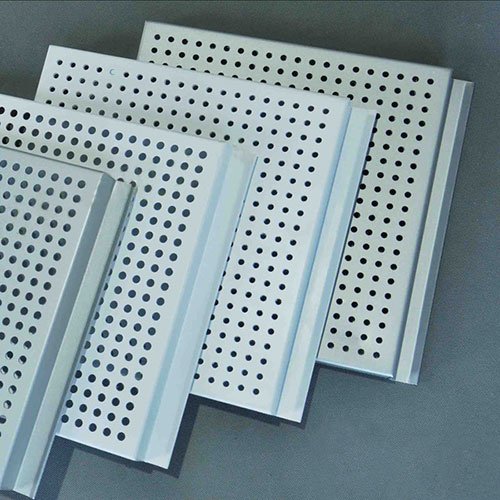 沖孔板樣式靈活:可提供任意孔徑、孔距進行自由組合搭配,可根據設計師的規劃作出相應的畫案,滿足了規劃師多元化的圖案。配以吸音紙,以滿足不同的吸音效果設計要求,防風性強、安全性很高,每塊板都設計安裝有防風卡碼,適合戶外裝飾。